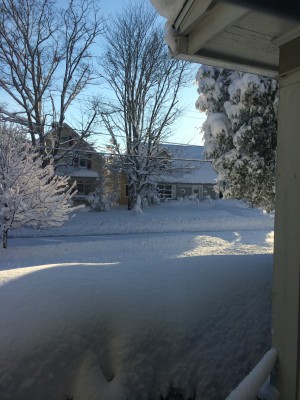 I woke up around 5:30 with texts on my phone about school being cancelled, so that was a relief.  Otherwise, I’d be the lone student who couldn’t make it in…and have to make up the missed time on my own.  Later in the morning, we heard Moog was closed as well.  By mid-morning Tuesday, the accumulation was growing and it snowed virtually all day.  We were out three times to shovel and snow-blow, and that was just to keep it manageable.  When we weren’t outside, we were parked on the couch trying to rest up before heading out again just a few hours later.  There may have been hot chocolate and episodes of The Walking Dead involved…