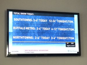 It started snowing Monday night, and I was definitely stressed about having to drive into Buffalo the next day to go to the hospital.  I knew if the Buffalo Public Schools were closed, I’d also have the day off.  However, the snow was expected in the Southtowns, not Buffalo, so we weren’t sure what was going to happen.  Moog rarely closes, so Andrew anticipated going into work.