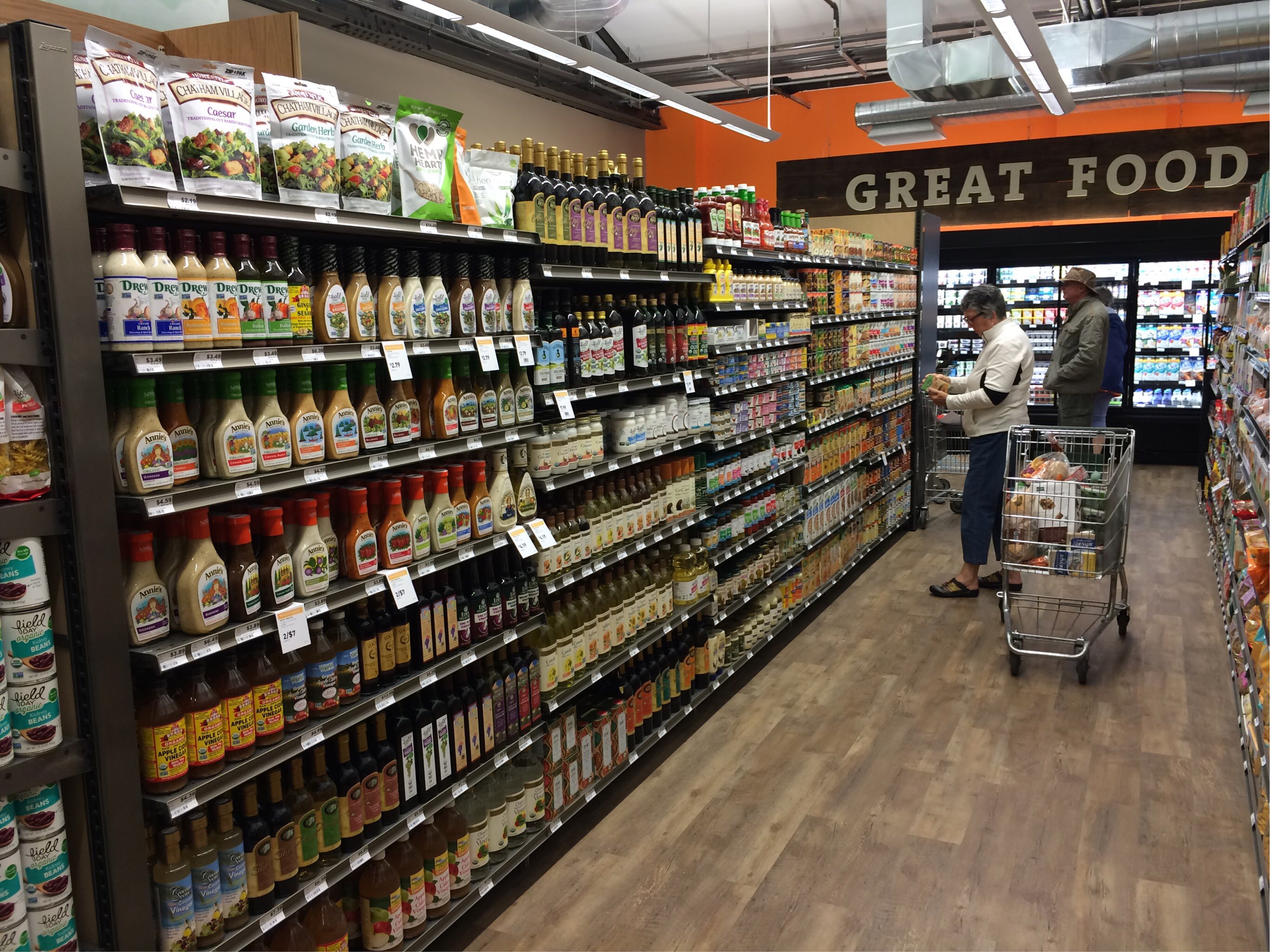 View of the store as if you were entering from the Main Street entrance; store in front of you and the prepared foods section is to the right of this photo: