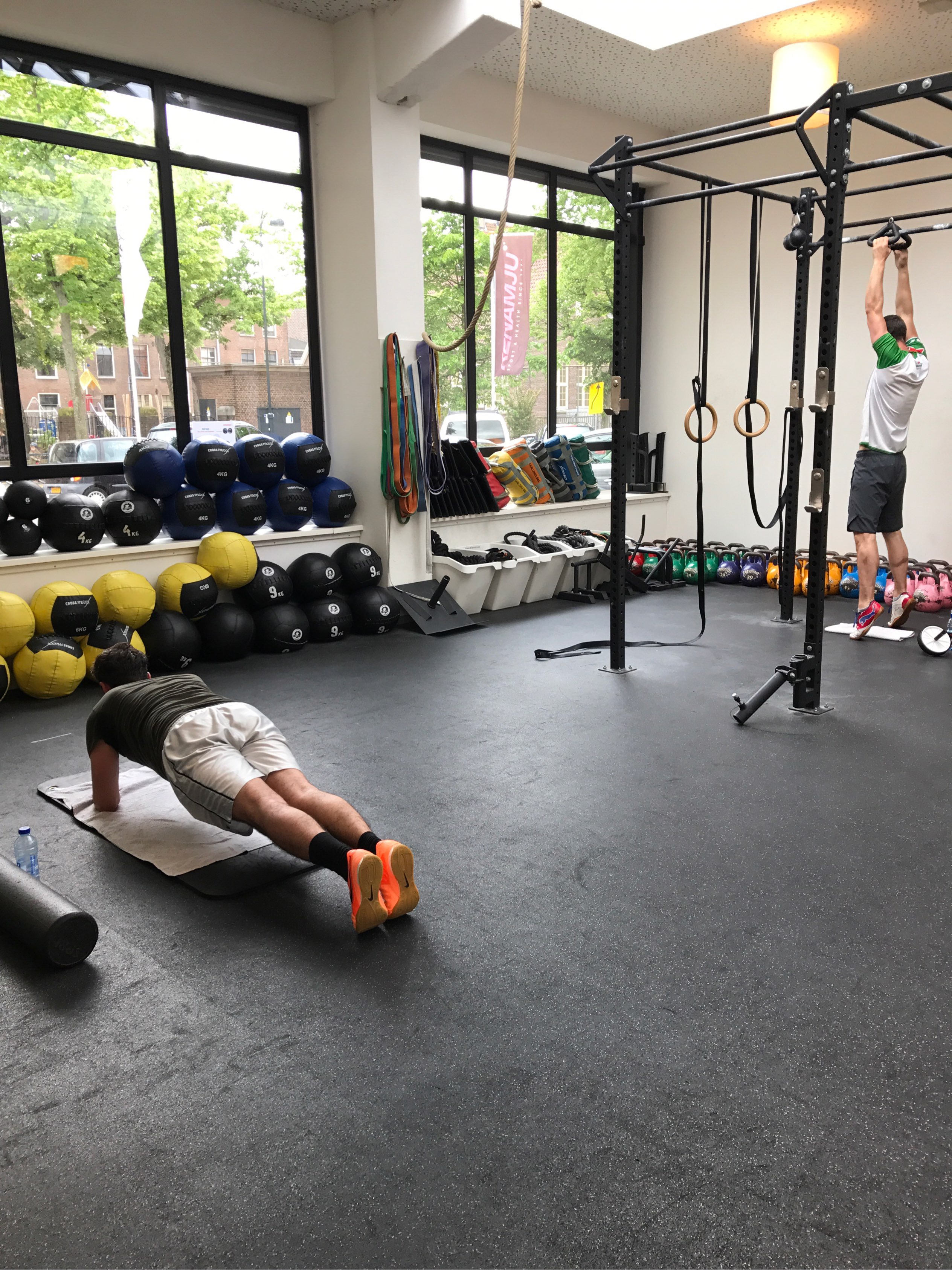 The gym is actually quite extensive; there is a pool, childcare, a cafe (of course), a weight room with machines, a crossfit room (below) and various studios for yoga, biking, etc.