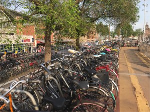 That evening, Andrew and I took a train to Amsterdam to meet his co-worker from East Aurora, Frank, for dinner. If you’ve never seen the biking action here in Amsterdam, it’s certainly an event to witness. According to our guidebook, the average family has four bikes, and in the city it’s most certainly their main mode of transportation. They even have parking ramps just for bikes!