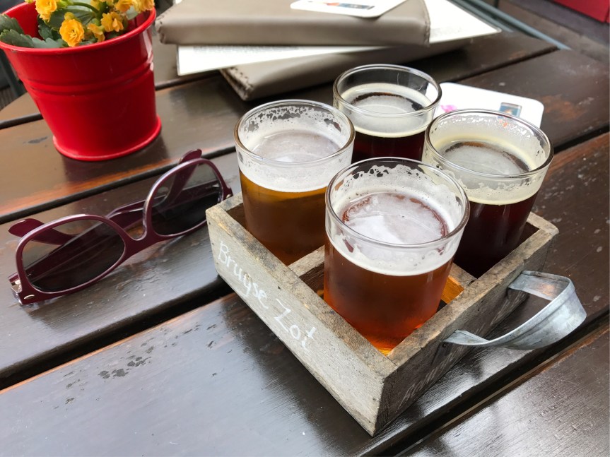 While out, we stopped at a local bar and I tried a flight of local favorites (we were in BELGIUM, after all), including Bruges Zot, brewed right in the city.  I tend to prefer amber and dark beers, but lighter brews are what’s in season now.  Thankfully, there always seemed to be a decent selection wherever we went.