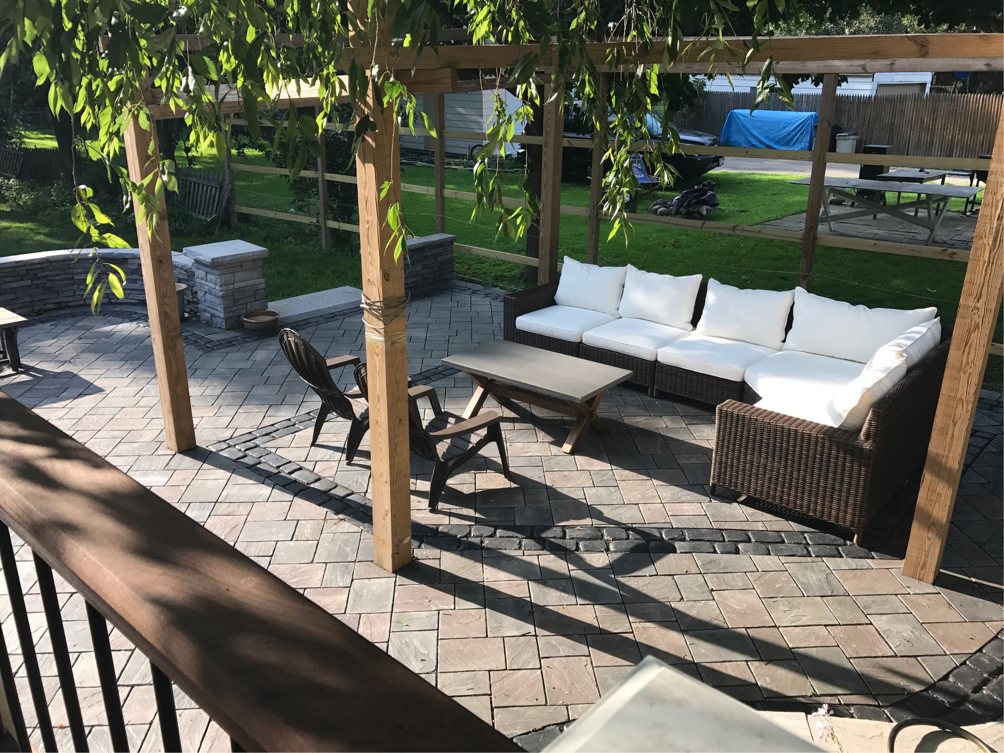 So far, his plan has worked! We plan to finish the fence where the existing posts are this year, as well as have an aluminum fence installed where those plastic deck chairs are lined up, so Hadrian can go out off-leash. Not sure on the timeline for the pergola…or the rest of the fence.