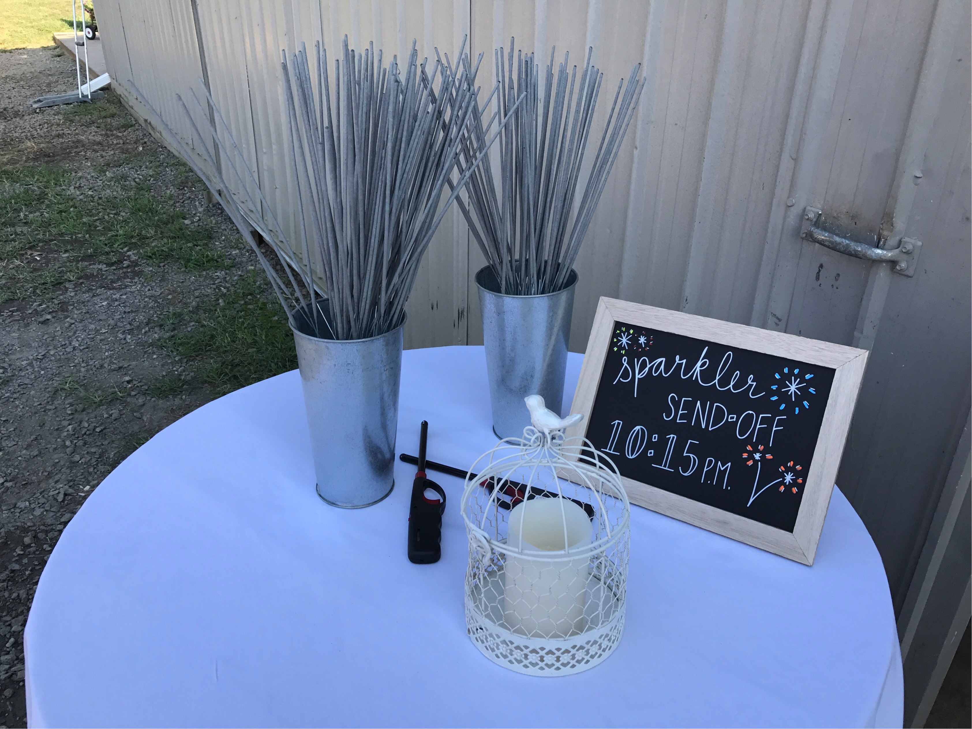 The couple planned to end their night with sparklers, so we set up a table and I painted a sign so guests would know what time to line up.