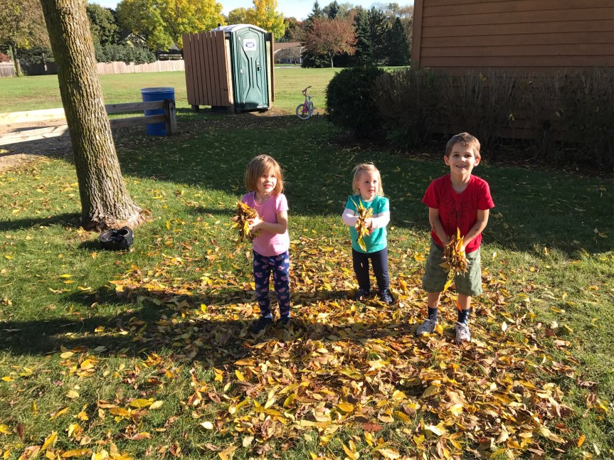 Our friends live in walking distance to a small park, where we took the kids a couple of times. They loved playing in the leaves.