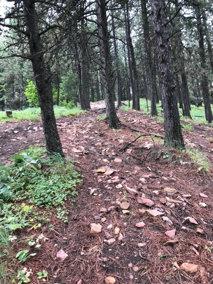 However, it doesn’t take long before we reached what looked like mountain- and dirt-biking trails and had to climb up some pretty steep inclines. The photo below is looking down after our first ‘summit.’