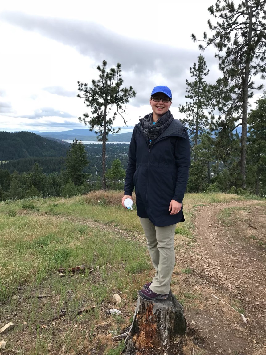 We woke up early again and headed out to Canfield Mountain, a recommendation we received over burgers from the cook at Hudson’s the previous day. It’s pretty unassuming from the beginning–you simply park your car along a road in a neighborhood–and start up a hill on a well-traveled path.