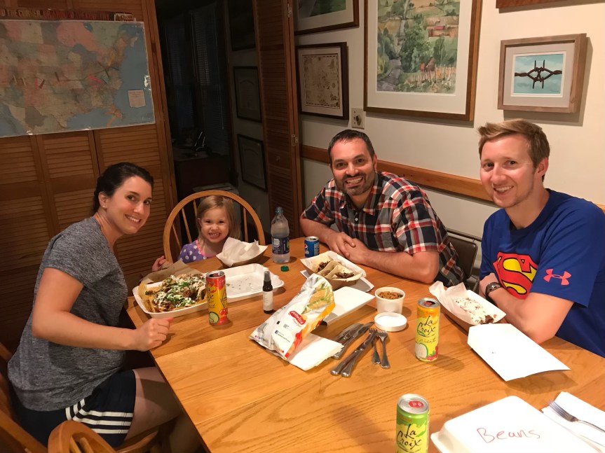 We started with takeaway tacos from Left Coast Taco, and walked over to the Nyes’ house to eat them, due to proximity and air conditioning.