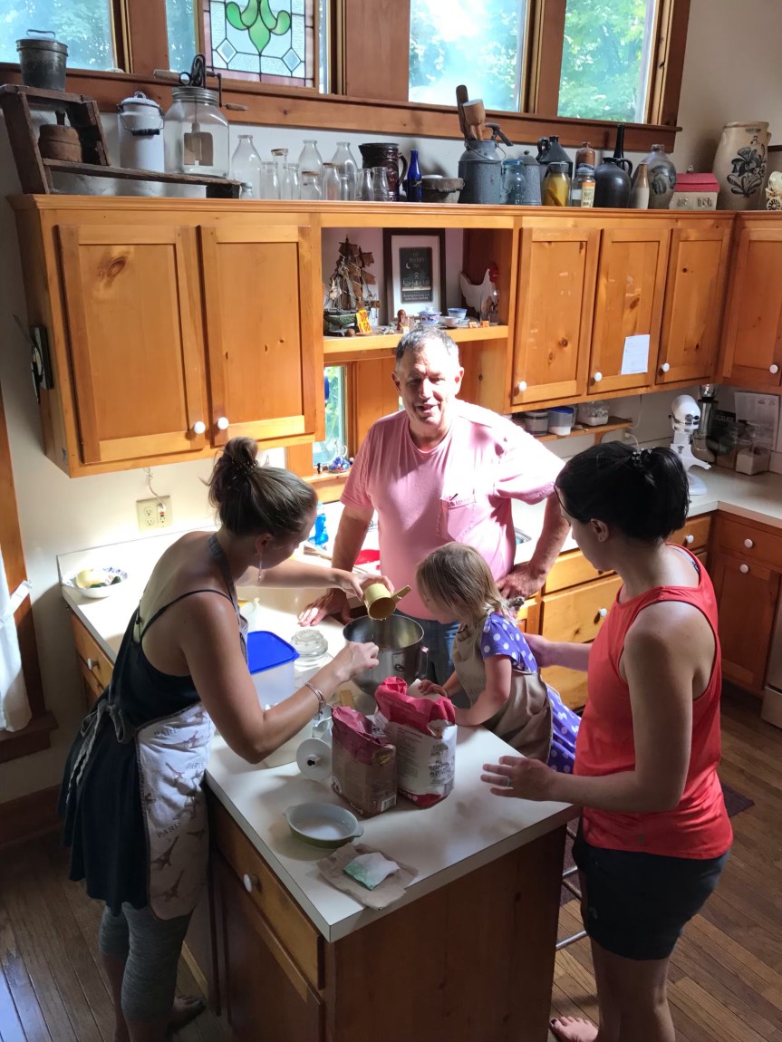 Nora had requested to ‘make pizza, soup and bake bread’ during her weekend with us. Unfortunately, the temps were high and without a/c I knew turning the oven on at our house would be a non-starter. PLUS, Mr. Nye is an excellent bread-baker, and–as mentioned previously–they have air conditioning.