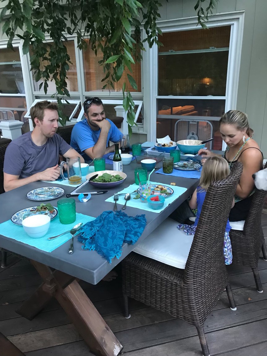 We ate on our back patio one evening–a simple meal of grilled veggies and sausage, watermelon and salad. I love using //ws-na.amazon-adsystem.com/widgets/q?ServiceVersion=20070822&OneJS=1&Operation=GetAdHtml&MarketPlace=US&source=ac&ref=tf_til&ad_type=product_link&tracking_id=hollylayer-20&marketplace=amazon®ion=US&placement=B06VW5ZH4B&asins=B06VW5ZH4B&linkId=21468e1afd70c3fb3749e7e736021359&show_border=false&link_opens_in_new_window=true&price_color=333333&title_color=0066c0&bg_color=ffffff” target=”_blank” rel=”noopener”>these melamine plates I got for eating outside!