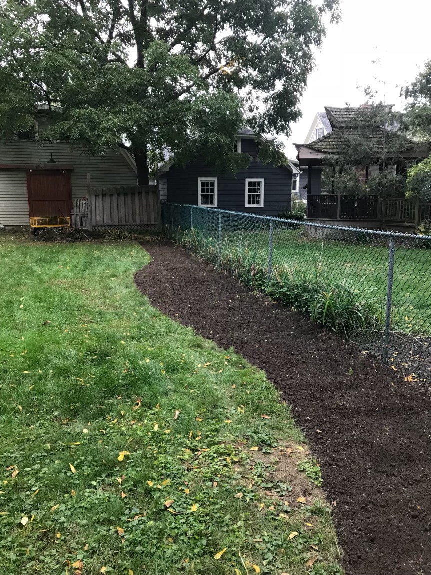 The bed on the other side of the yard has been tilled up and I’ve spread some of the compost, but haven’t tilled it in yet.
