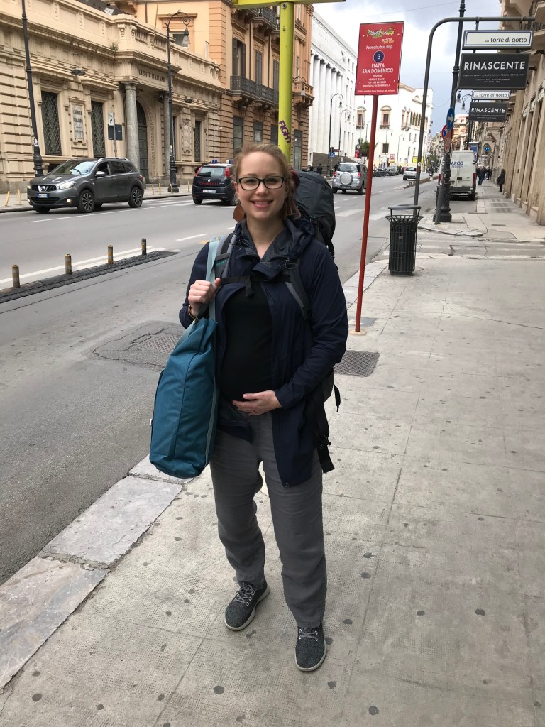 Perhaps the biggest change to our trip related to pregnancy was my need to go at a slower pace most days. I simply can’t walk as fast as I used to, and appreciated chances to sit down more than usual. Overall, I was fine to walk upwards of 20,000 steps a day (I wore my Garmin to keep track.) because I’m pretty active and fit at baseline. But, even I got winded walking up all those stairs, especially in Ragusa, a town built entirely on a hill. While we enjoy a chance to get afternoon coffee anyway, I think those breaks were really important for me to recharge a little. Also, we opted for public transportation a couple times (taking a shuttle up to the theater at Segesta, and taking a taxi out to the Capuchin Catacombs in Palermo), both of which would have been walkable had I not been pregnant. (Note: We did walk BACK from both places…I’m pregnant, not crippled.)