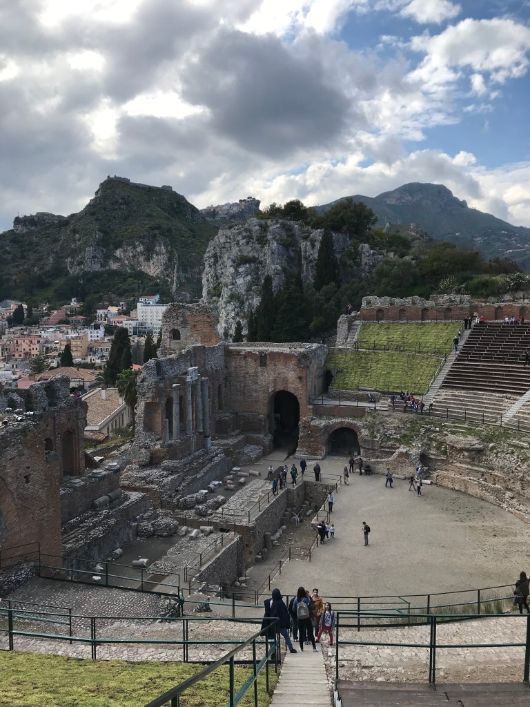 After breakfast, we splurged for coffee and granita on the veranda of the super-posh hotel next to the Greek-Roman theater. One coffee was like 11 euro, but the view and people-watching were worth it.