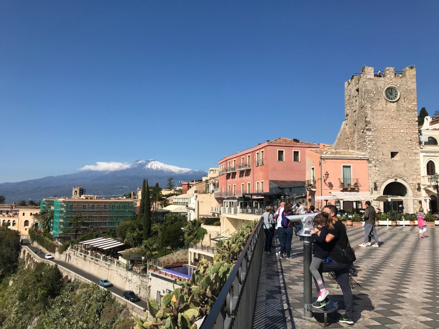 Taormina is a ‘vacation-from-your-vacation,’ beachy spot that feels resort-y even in cooler weather. We were blessed with bright sunshine, mild temps and clear views of Mt. Etna.