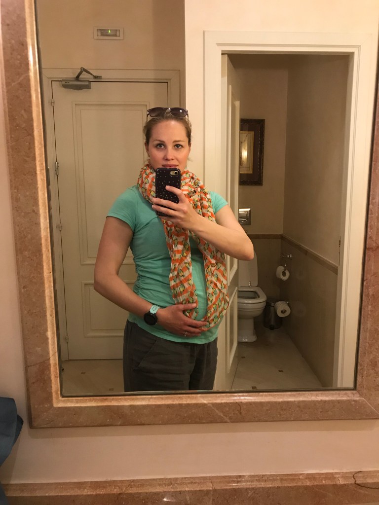 Baby and I were feeling extra cute (finally wearing something with some color!) and so we helped ourselves to a bathroom selfie: