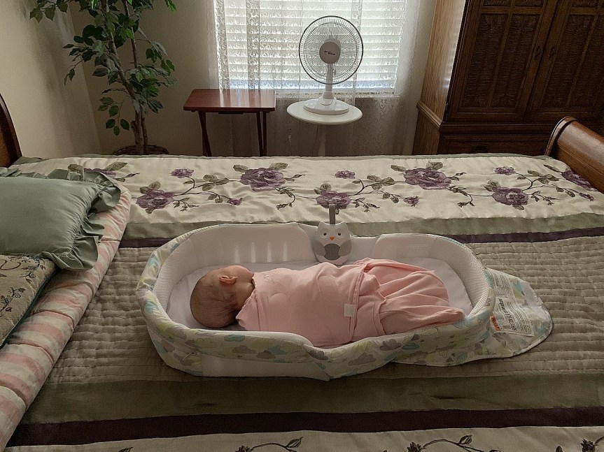 I picked one up before getting to our AirBnB that night and was so glad I did. Combined with the portable sound machine, the co-sleeper created an environment similar to her bassinet at home AND I could bring it with me to my aunt’s house for her naps (pictured below).
