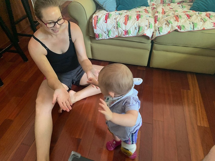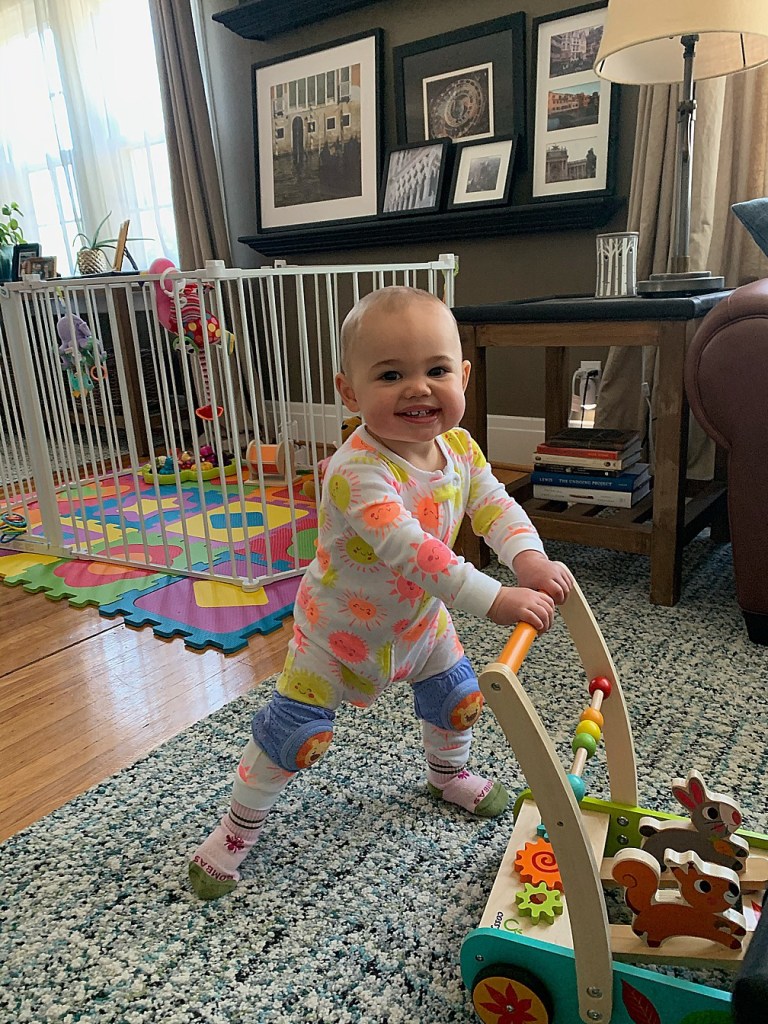 I’m really enjoying this stage, despite my having to be a bit more hands-on to keep her safe and out of trouble. She’s started playing a little more independently, and simply walking from place to place seems to keep her entertained. I can take her across the street to the park and let her walk around; she doesn’t even need to play on the equipment!
