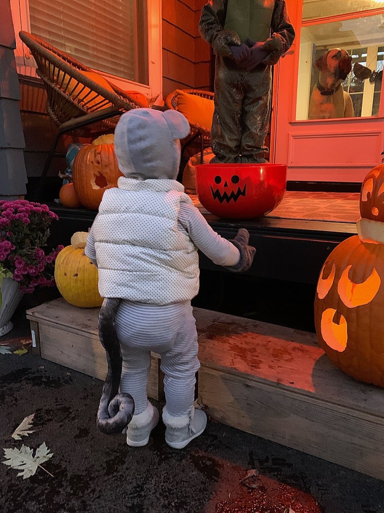 We did a little trick-or-treating this year, and she seemed to enjoy the decorations. I love how ‘all-out’ some of the families go in our neighborhood! This year certainly wasn’t the best (darn COVID), but we made the most of it. Many houses sent their candy flying down a PVC pipe!