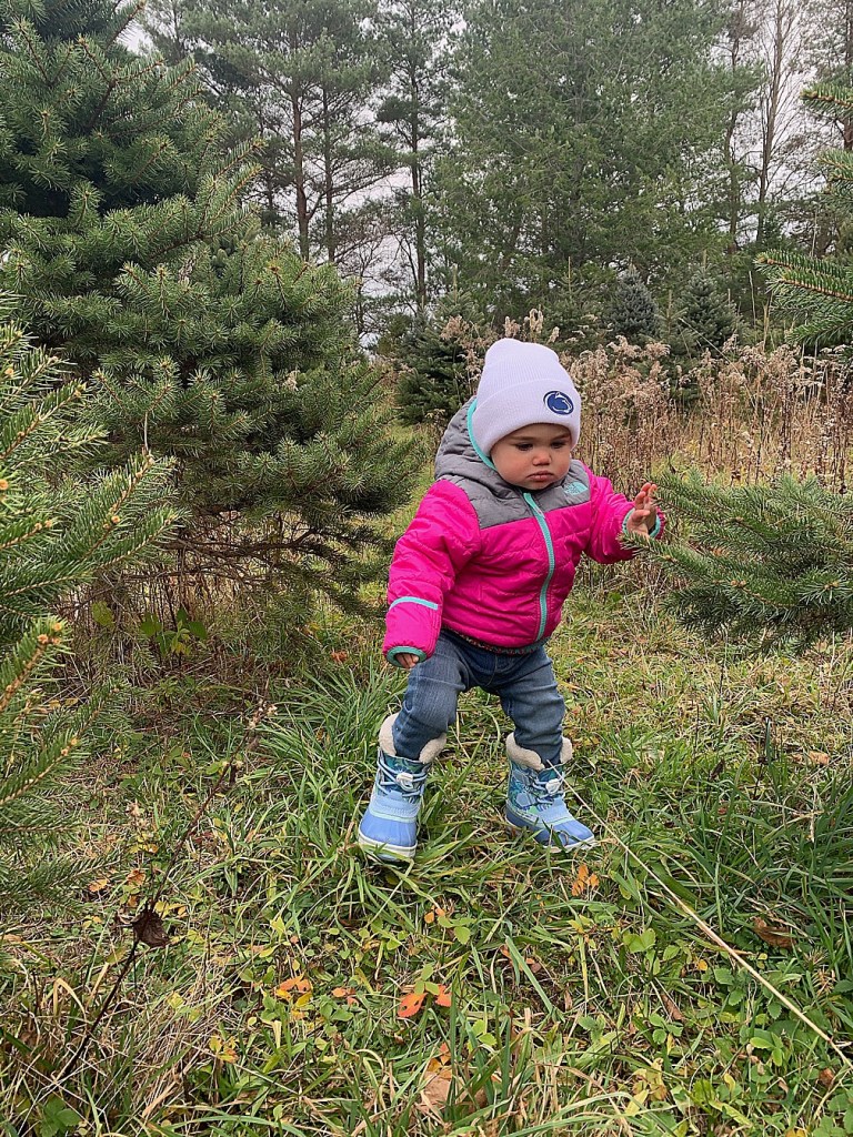 Maelle got to practice walking in her snow boots, which is adorable. She did a great job navigating the shoulder-high brush between the trees in already-large boots with room to grow. She’s a trooper. (And just in case anyone is wondering, NO, I did not buy my 16-month-old a North Face jacket; it was a yard sale find from her great-grandma, and her Sorel boots were purchased used from Mercari. I’m happy to drop some $$ on certain items, but things my daughter will outgrow in the blink of an eye aren’t one of them.)