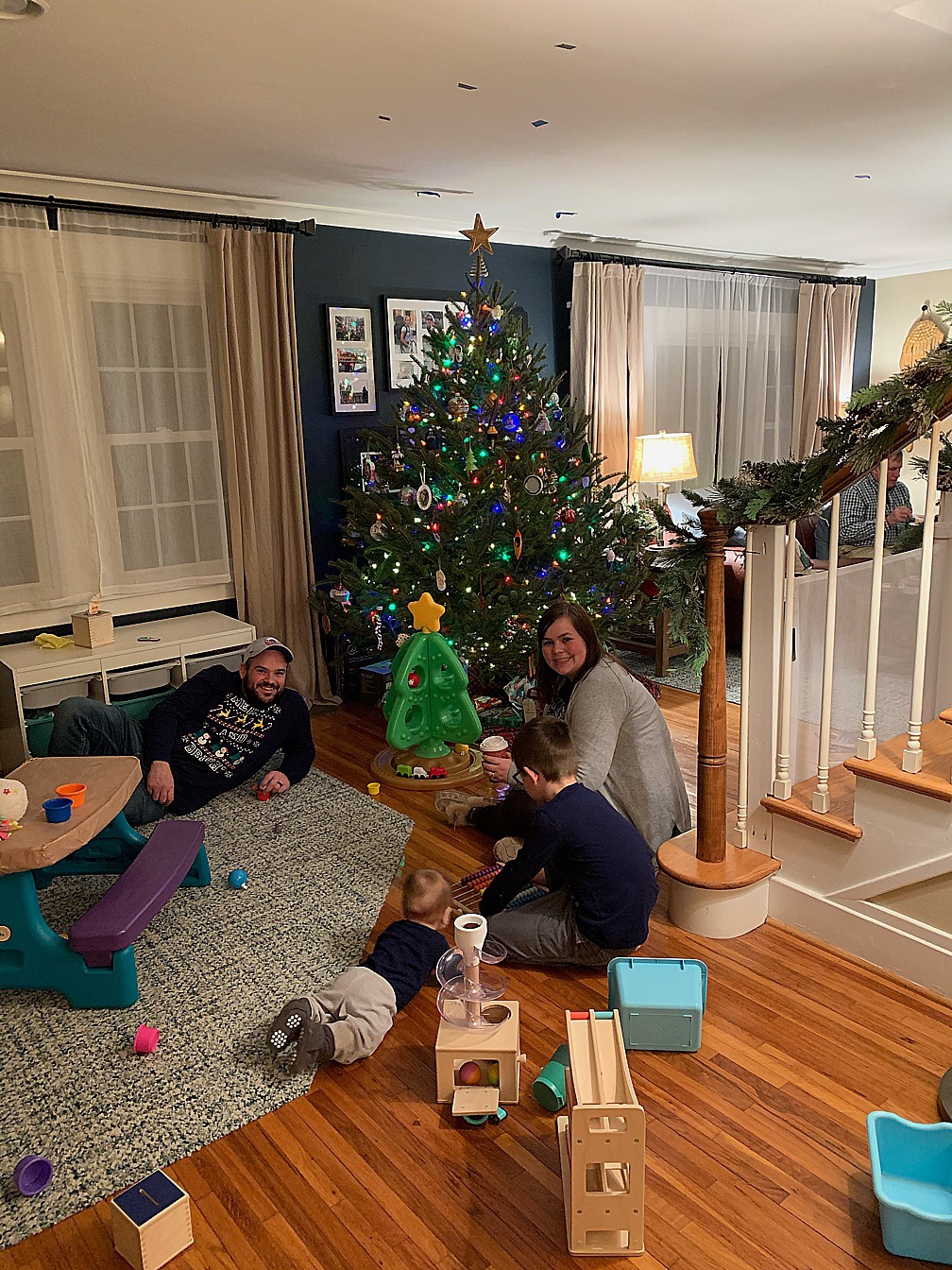 We hosted our annual Christmas Eve party, although it was smaller than usual. We limited it to Andrew’s family and one other family with whom we spend a lot of time: the Nyes. Honestly, after adding three new grandkids (and one more on the way!) in the last year and a half, the house is getting more and more full with each passing year. At least this year we had plenty of toys for the kids to play with…