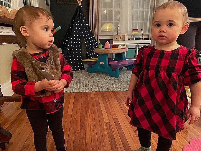 Forgive the blurry photo; it’s the only one of us in our Hanna jams! I fell in love with Hanna Andersson jammies this year, and got us all the plaid set.