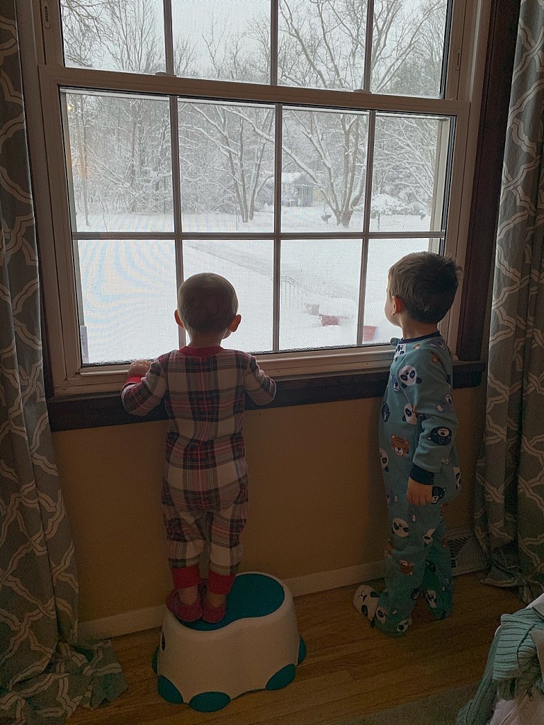 We certainly did wake up to snow! Andrew’s dad was soon out clearing the driveway, and some of us ended up outside to play.