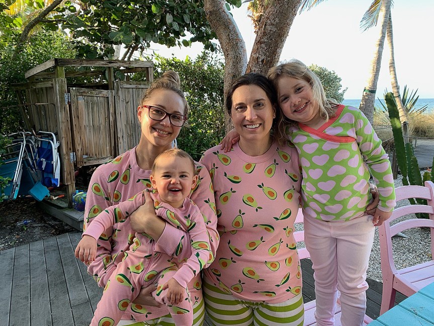 Emily and I got fancy and ordered matching avocado jammie tops from Hanna Andersson for the trip! We decided to get the girls in on the matching jammies, too! You can read more about how much I love Hanna jammies and our quest to find matching pants for the avocado tops here. (They are, of course, now available again but still full price.)