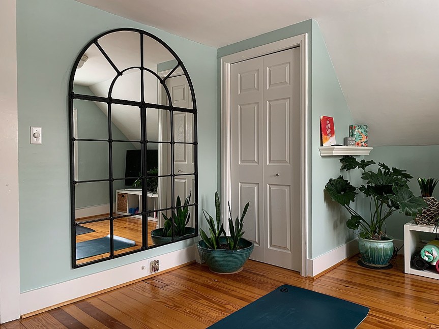 I’ve always wanted a dedicated workout space in our house, and you’d think with four bedrooms and only one child that I’d be able to find some. But, our 100-year-old house has small rooms and low ceilings, which aren’t conducive to jump squats. I’m not even that much of an at-home exerciser, preferring to run with friends and hit group exercise classes at the Y. But, between having a toddler at home and COVID stretching on and on, it was becoming more and more apparent I’d need to do something to break a sweat at home.