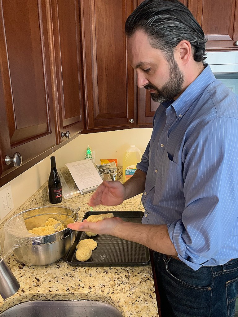 Andrew signed us up for a virtual cooking class with Streaty, the company we’d used to take a street food tour in Palermo, while on our babymoon to Sicily in 2019. The class featured arancini, which caught his eye. We loved the softball-sized balls of fried risotto around a meat/pea/carrot ragú (so unique. so heavy.) and knew making them would be a fun experience. Because the class was taking place at 6 p.m. their time, it would be lunchtime here. So, we shipped Maelle off to the Nyes (My in-laws had, unfortunately, also succumbed to the stomach bug!) for lunch and we whipped up a charcuterie plate, opened a bottle of our wine from Sicily, and logged on.