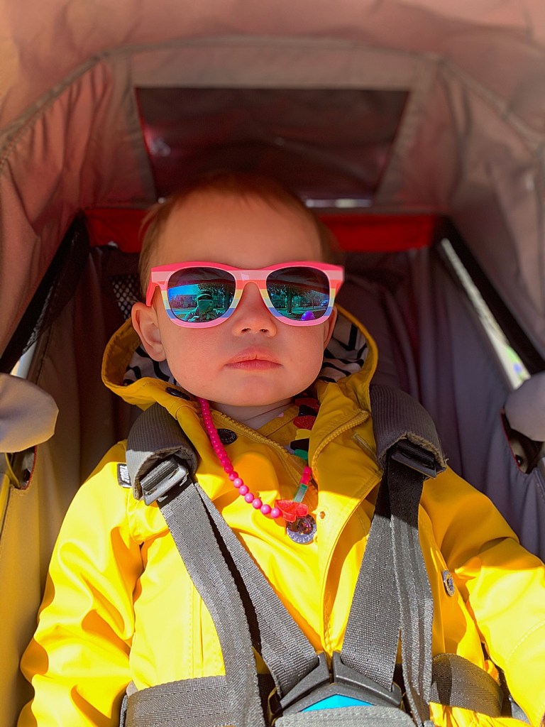 This girl is sporting some new shades and a necklace, spoils from my trip to Carter’s with Abigail. I love shopping for Maelle. Buying clothes for girls is so fun; I wonder if I’d have this much fun if we had a boy? Don’t get me wrong, there are plenty of adorable clothes for boys–I just don’t know if I’d get as much joy out of accessories or ‘dressing him up.’