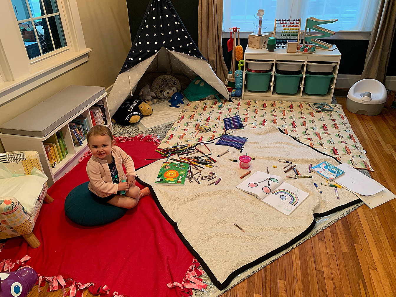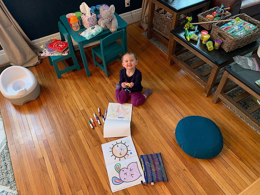 Meanwhile, we’ve colored, read and played with Play-Doh more than we ever have before. My body aches from sitting on the floor! In some ways, it’s been nice to slow down and enjoy playing with Maelle and leave other things for later.