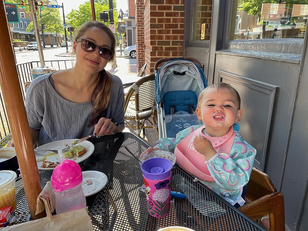 Before lunch, we blew bubbles in a little park near the water and Maelle enjoyed watching all the planes flying low overhead, coming in to land at Reagan Airport. She’s started waving at them and saying “Hi, Nana,” since her grandma is a flight attendant!