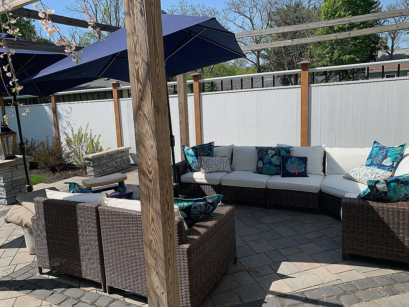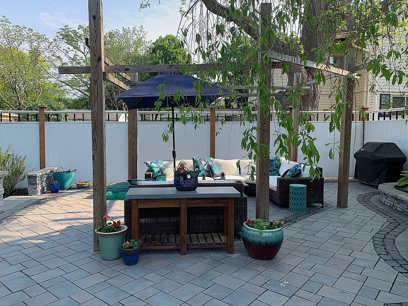 Two weekends ago, Andrew spent all day Saturday doing our taxes (he literally does them April 14th, EVERY YEAR, so this year he did them May 15), and I single-handedly set up our outdoor furniture and umbrellas. It had been warm, and BY GOD, I was going to enjoy our backyard whether the patio had been cleaned or not.