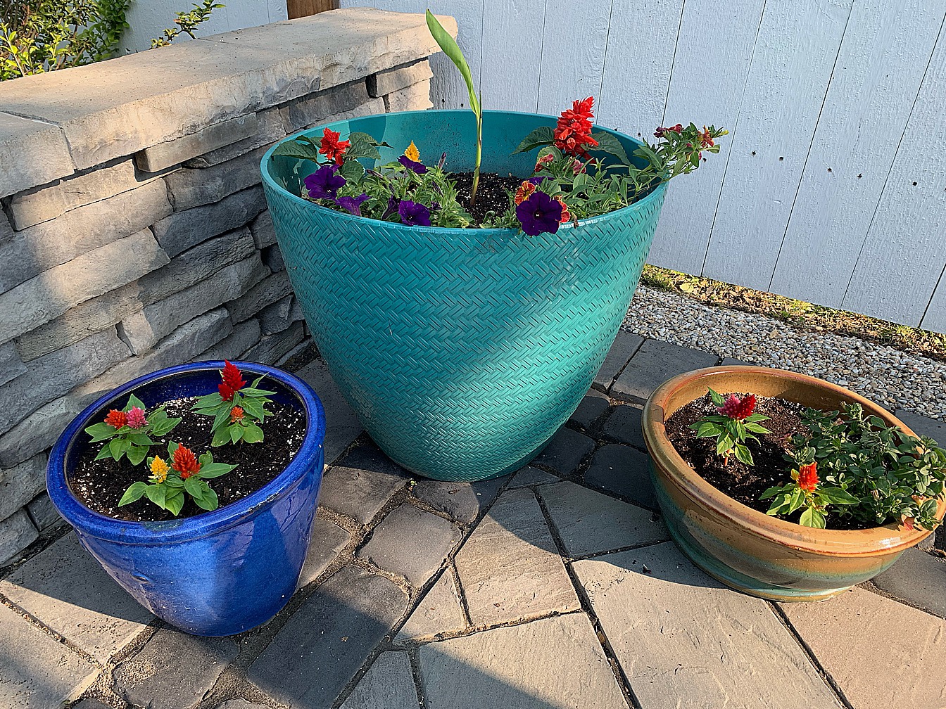 Maelle and I spent Friday morning shopping for plants at Home Depot and Murray Brothers Hosta Farm, and then I potted them during her nap. (You didn’t think I was going to let her help, did you? I may be WAY more laid back than before, but deep down inside, there is still a girl who wants everything to be JUST SO.)