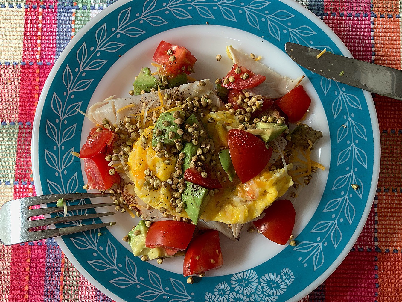 My next creation was a savory one: toast with turkey, shredded cheese, avocado, tomato and the matcha Lil Bucks!