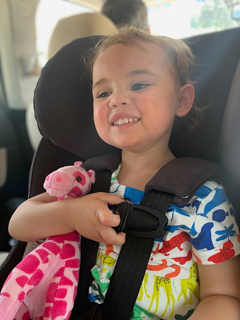 As we made our way out through the gift shop, Maelle fell in love with a pink giraffe. (It might have been the *last* toy either of us would have chosen, but such is the preference of toddlers.)