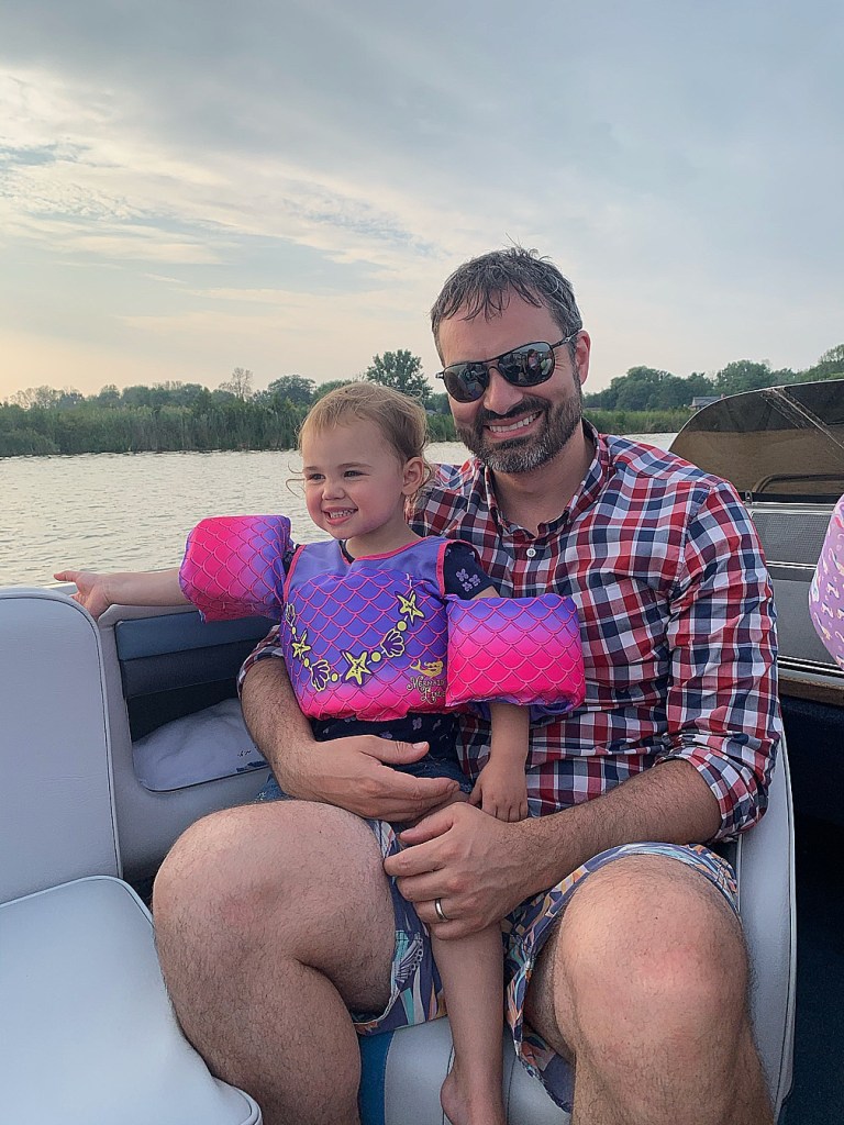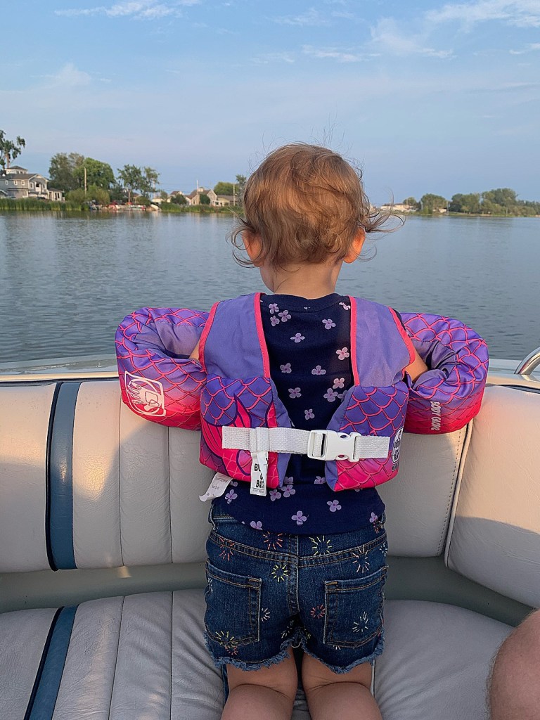 We go to ‘Uncle’ Al’s (he’s the uncle of a friend of Andrew’s from work) one day each summer in August to enjoy boating and relaxing on Cranberry Pond, which is–literally–a stone’s throw from Lake Ontario. When we started, there were no kids, and some of the couples weren’t even married yet. We were carefree and only worried about how many times we’d gotten to tube or water ski. Now, the littles outnumber the adults easily and it’s all arms, legs and lifejackets all over the place.