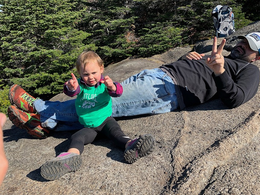 We ate our lunch on top of Porter and enjoyed the sunshine and rest. All in all, it took more than 7 hours to climb up and down both peaks! It was incredibly difficult, and looking back, I wonder how we did it. Many people carry their kids hiking; not many people carry them up high peaks! (And for good reason! She was so heavy!) But, it was an amazing way to start our trip.