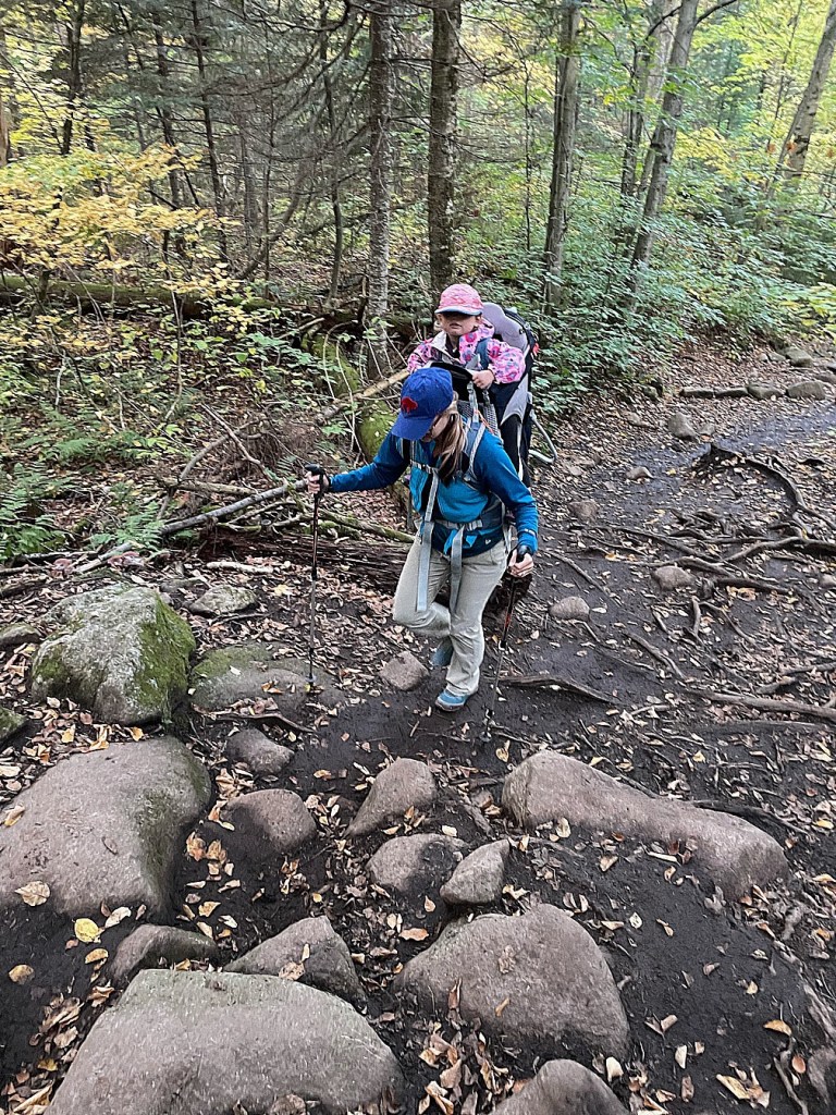I’d been wanting to go to the Adirondacks since we moved here, and it seems like everyone goes there all the time. We have lots of friends who go regularly to hike, so I knew I’d have someone to reach out to for advice when planning our trip. In fact, two of our good friends are 46-R’s (meaning they have climbed the 46 high peaks in the Adirondacks) and I immediately asked her if I was crazy to think we could carry Maelle up one of the smaller ones. She definitely said we were crazy…but that she thought we could do it.