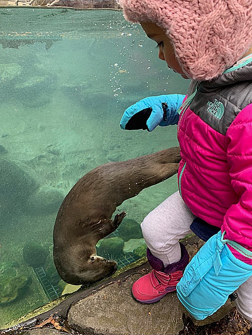In fact, we’ve seen more animals at the zoo now that it’s winter! Apparently, they are more active in cooler temps, and I’ve noticed that to be true. The river otter is always out making friends with visitors, and we even saw the lions running around and playing on our last visit.