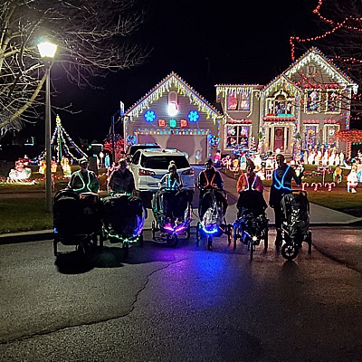 The stroller gang is still at it–sometimes with strollers, sometimes without–despite the snow. In fact, Christmas is my favorite time to run at night–the lights are so fun!