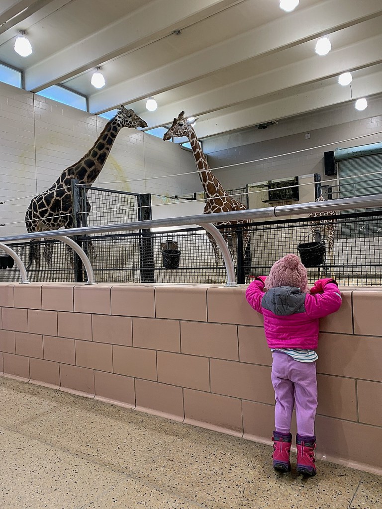 Maelle was especially excited to see the giraffes on our last visit. Seeing them inside and closer than usual makes you realize how big they really are!