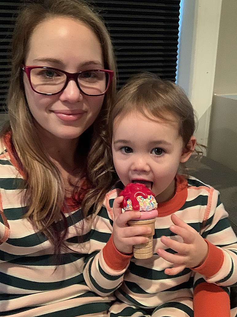 The following morning, we all slept in and sipped our coffees while Andrew went out to pick up some breakfast. Maelle certainly enjoys playing with ‘new’ toys! She loved this pretend ice cream stand. We even got the kiddos in the hot tub before we headed home for a relaxing afternoon.