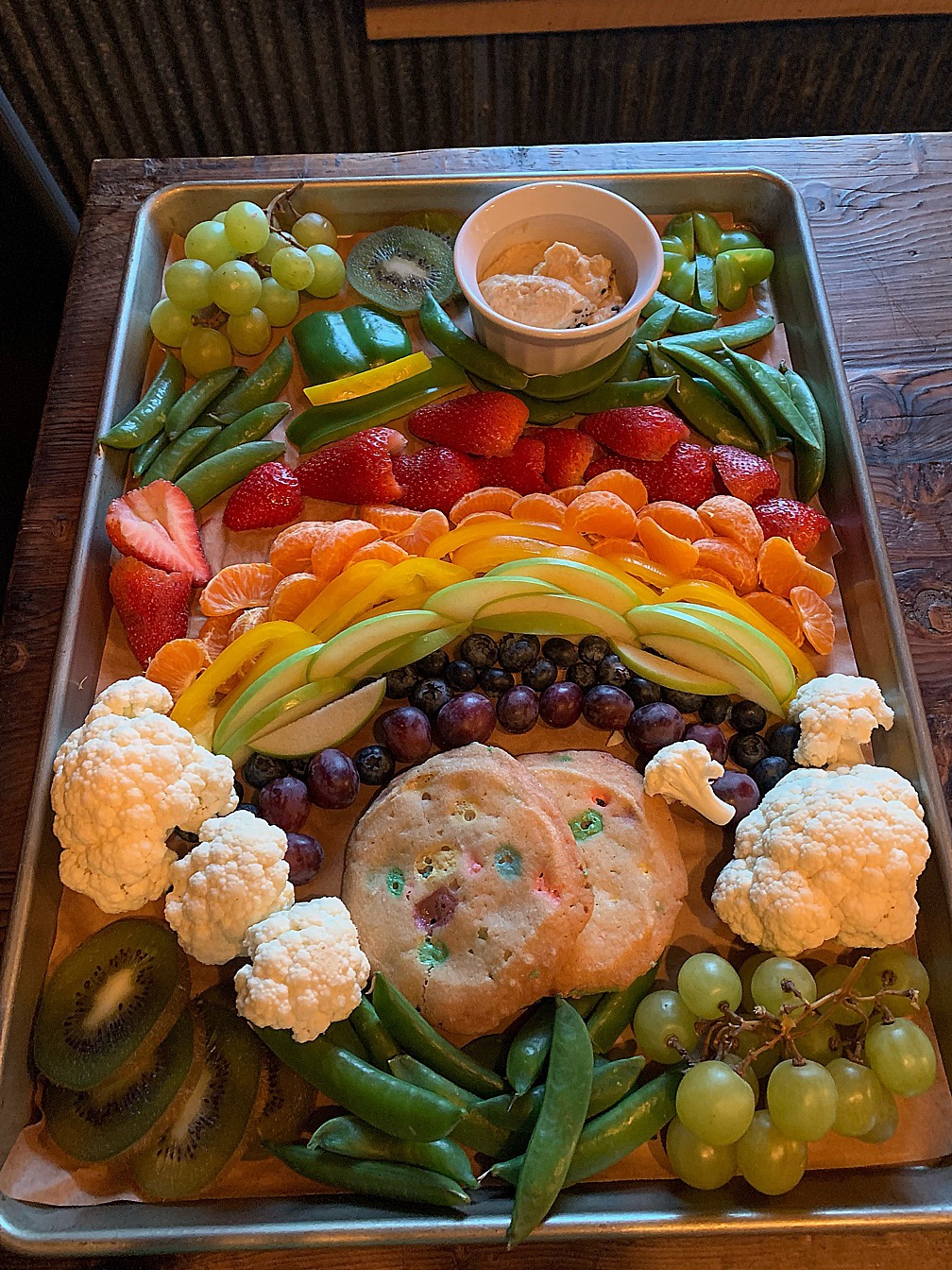 St. Patty’s Day fell on a Thursday this year, so the stroller gang planned to bring treats to run group for the kids. I made a fruit-and-veggie tray in the shape of a rainbow! When I saw a photo online, I couldn’t resist. I’ll have to remember this one for the future.