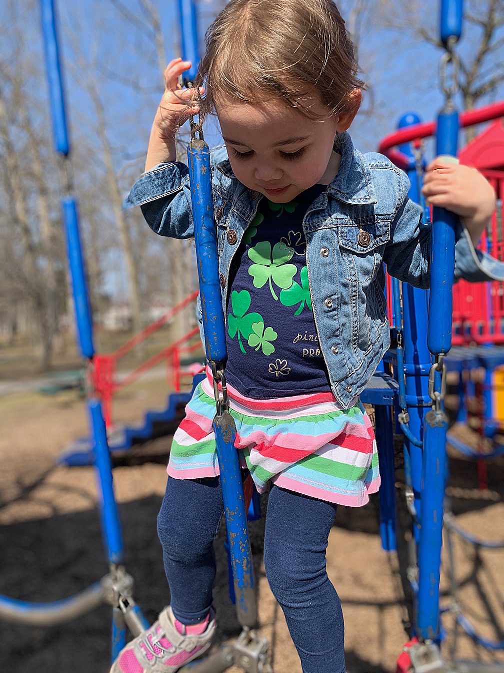 She loves to climb and is getting really good at the metal ‘moveable’ ladder. There are a number of ladders at our playground, and I think they are her favorite activity.