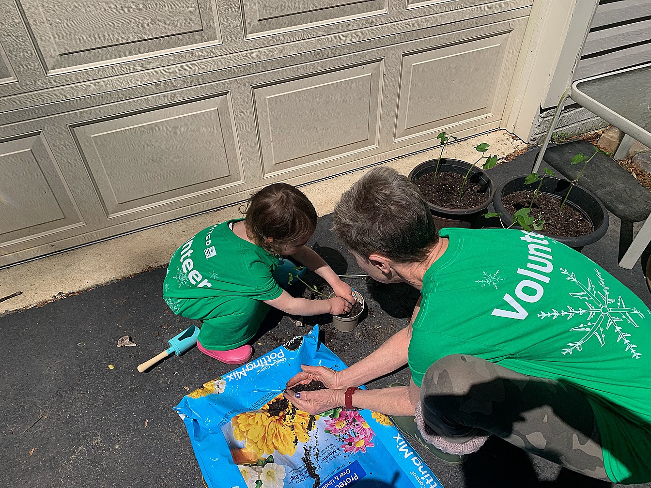 Maelle also helped Nana plant some bush beans, and even got to take one home!