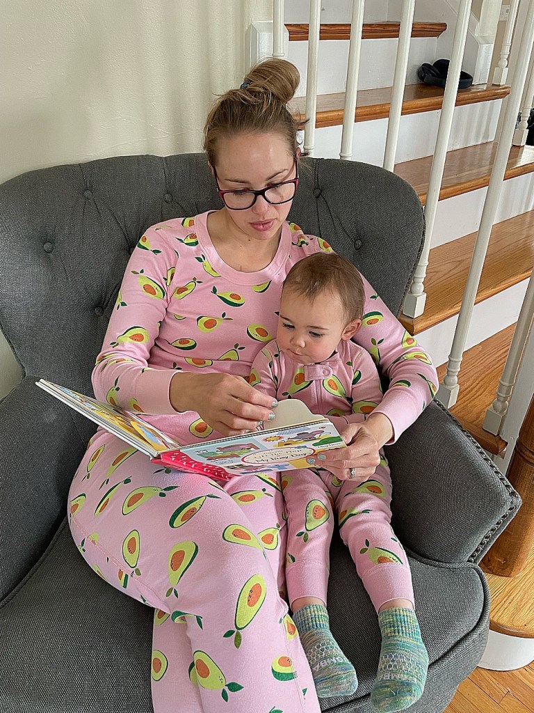 Mother’s Day 2021, I’m not sure what happened that the only photos either of us have are of Maelle and me in our matching avocado jammies, nothing of flowers or our breakfast. At least Andrew captured a sweet moment: