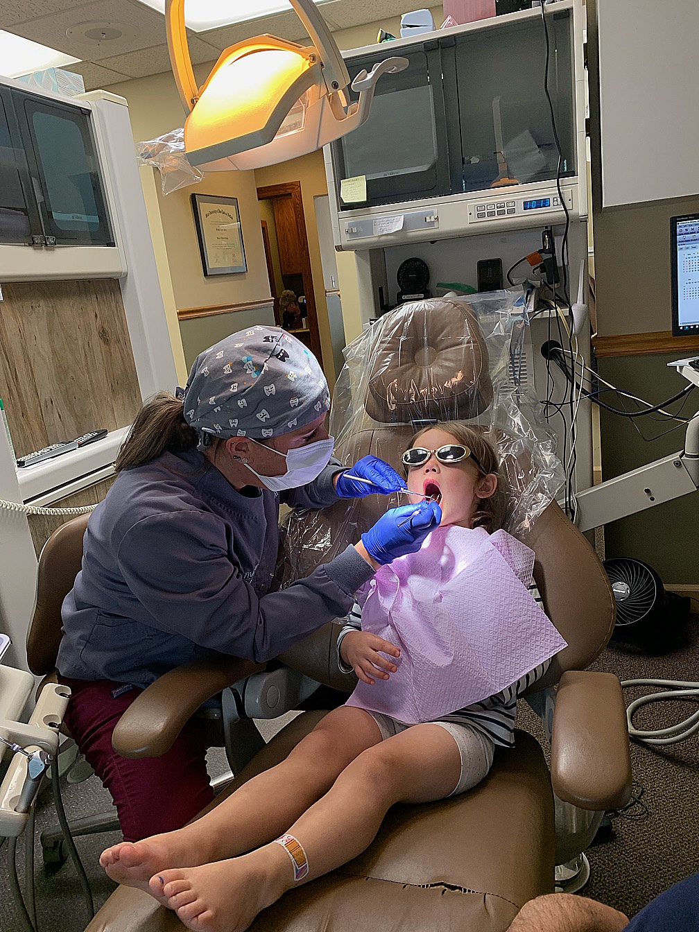 Thankfully, after some initial nervousness, Maelle settled in and allowed Kerri to do a full cleaning. Kerri explained everything she was about to do and what each tool is used for. She even gave Maelle some cool shades to wear during the appointment!