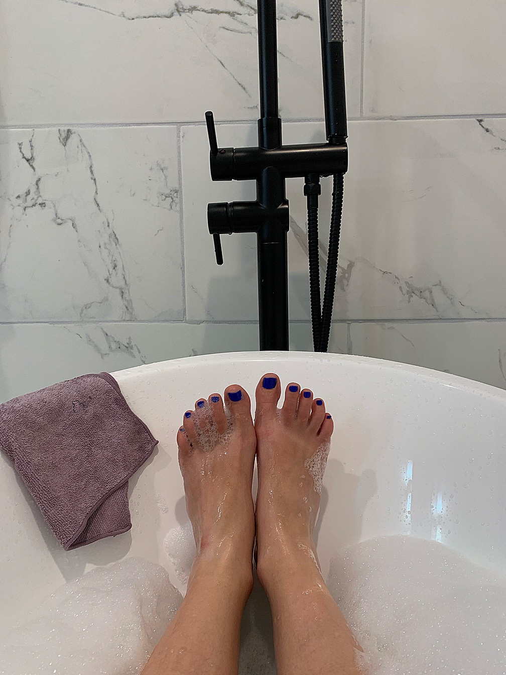 Ha! Can you believe that’s me? I must have been feeling especially goofy to pose for this photo. Maybe it’s because I’ve been begging Andrew to replace our TWENTY-FIVE YEAR OLD jacuzzi tub (mold in the jets = gross) for the last ten years!