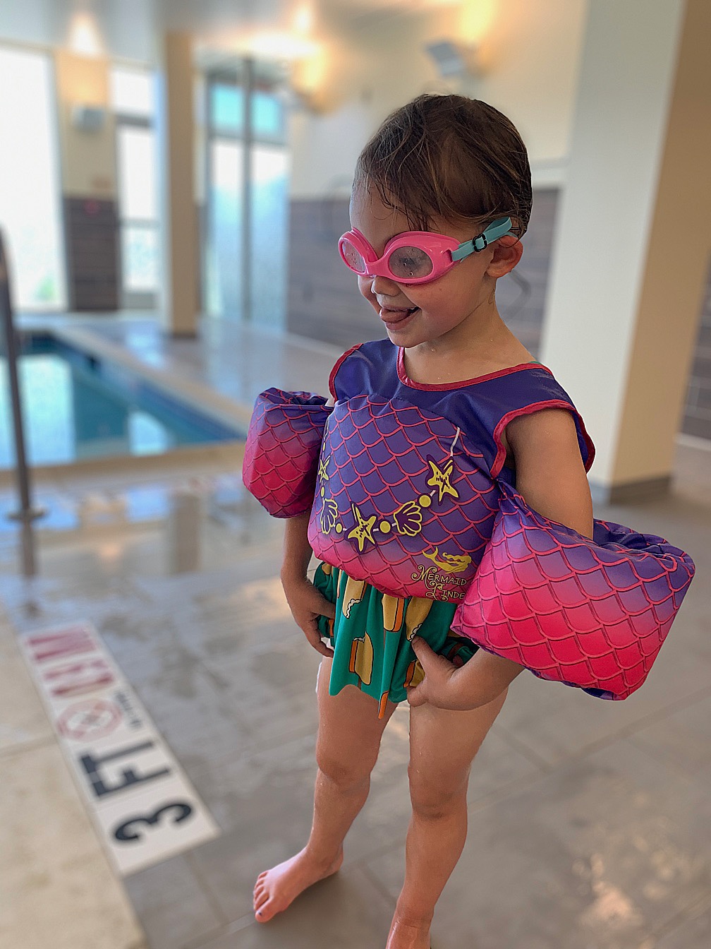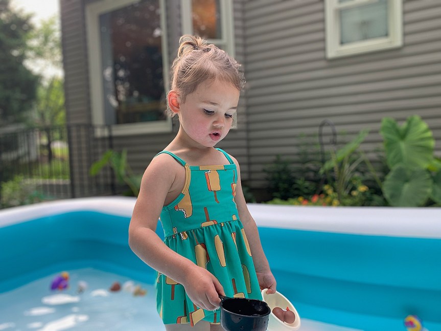 Maelle enjoyed both the kiddie pool in the backyard and the playground in their neighborhood.